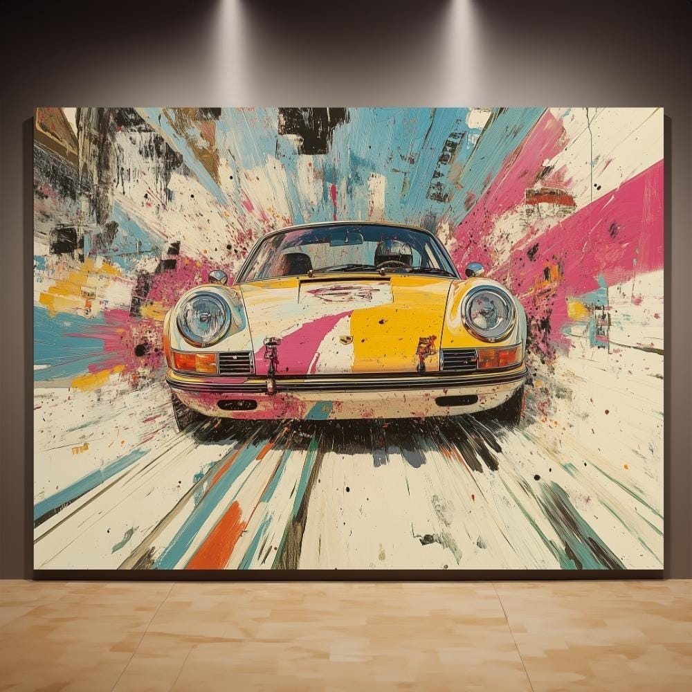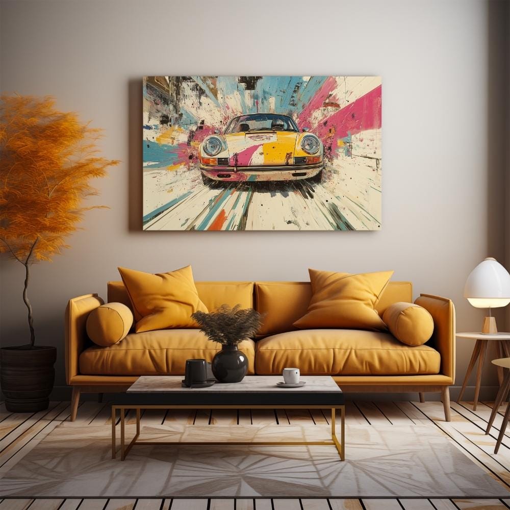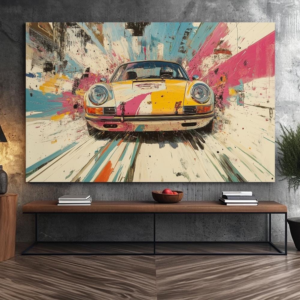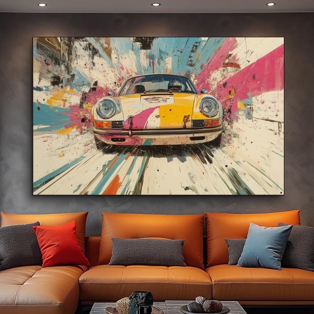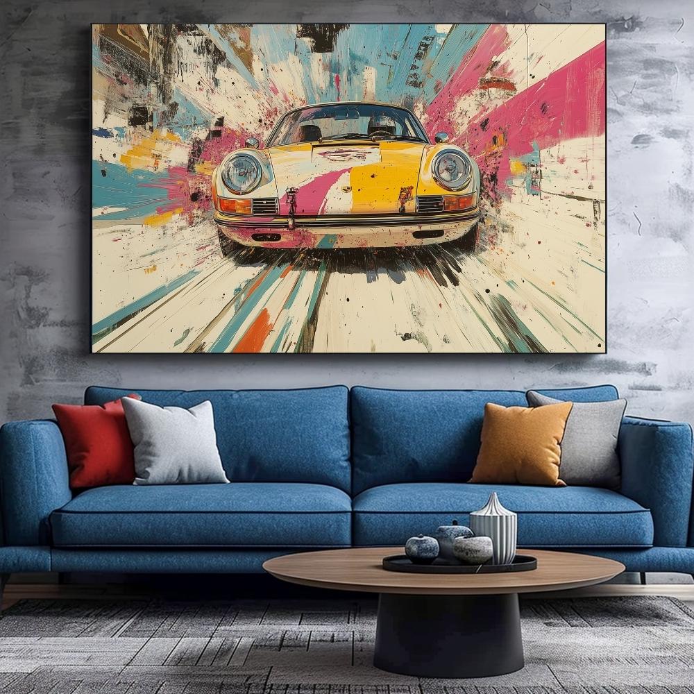 Uplift your decoration with this Vintage Porsche 911 Poster Colorful Extra Large Wall Art, Mid-Century Modern, Need For Speed Holiday Hosting Dopamine Car Decor, Gifts For Boyfriend🖼️